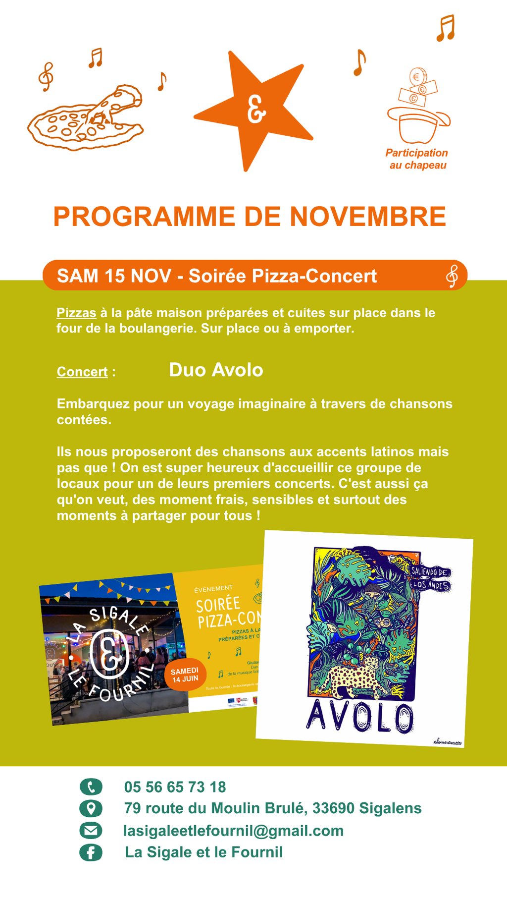L'association La Sigale & le Fournil vous invite à une soirée Pizza-Concert samedi 15 novembre 2025.
