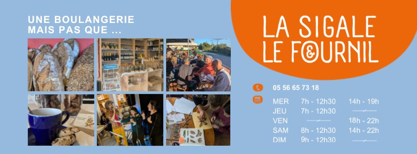La Sigale & le Fournil est un lieu associatif à Sigalens rassemblant café/bar, épicerie et fournil communal mutualisé entre plusieurs professionnels (boulangers et biscuitière).